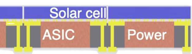 Self-powered 3D heterogeneous modules (PV + PMIC + Logic).